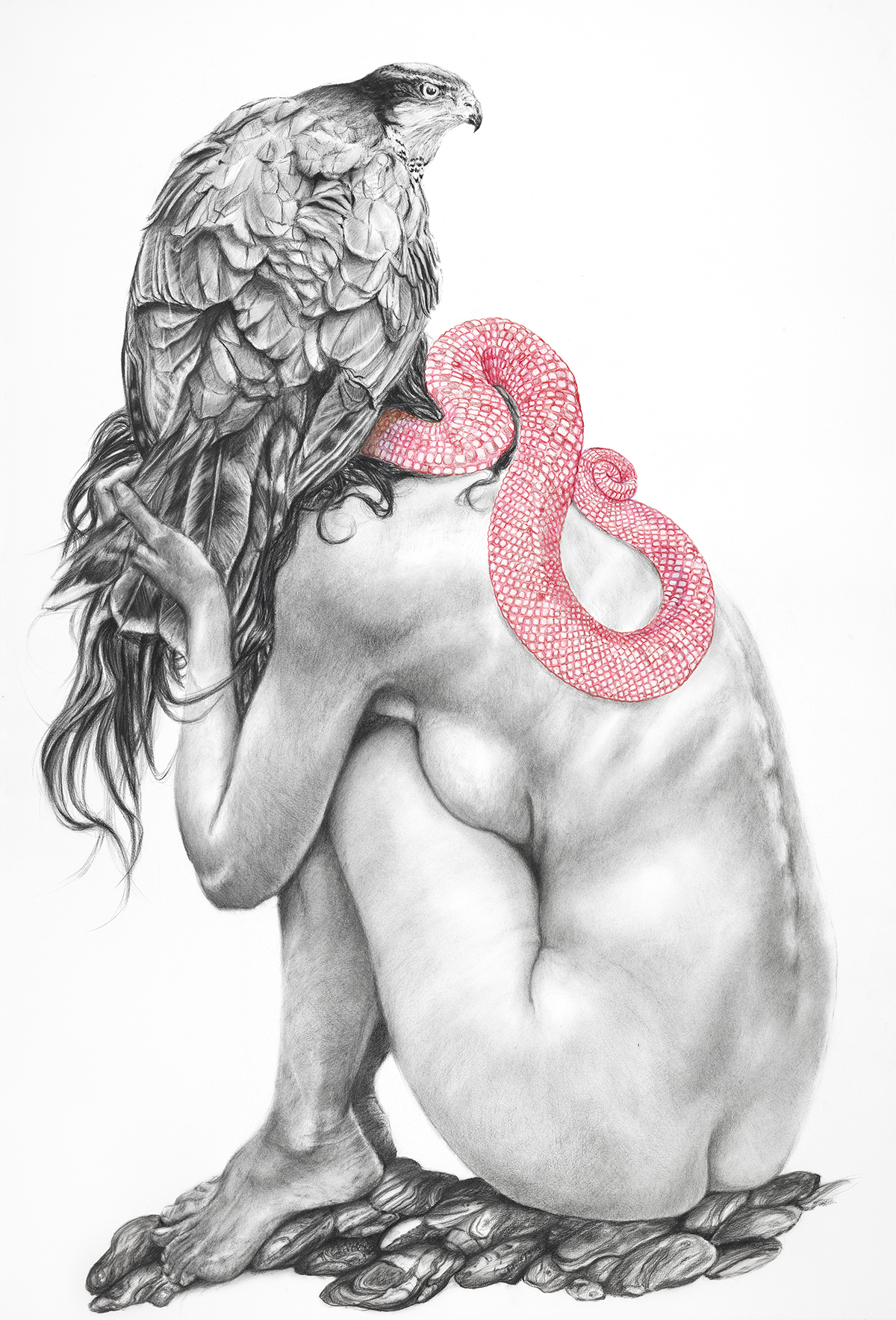 Most of my subject matter includes the female form in some form of interaction with nature and wildlife, albeit metaphorically at times. For me, it is important to represent the female form in the most positive light, as a thing of strength and beauty. Symbolically, there is this notion of mother nature and birth and nurturing that are the roots of everything we come from. It’s all quite humbling when you put it into perspective. I grew up around many strong women. My mom, sisters, grandmother, aunts and cousins were always prominent forces in my life. I was always very aware of the fact that the men in my family always represented the physicality of strength, while the women epitomized true fortitude. It seemed like a symbiotic relationship of sorts and quietly matriarchal. On some cellular level, all of these experiences are infused into my creative process. The resulting visceral stream of expression is in the best case scenario, hopeful and honest.