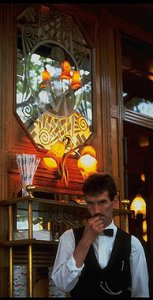 The Coupole is a vast, cavernous place, with seating for hundreds. It also specialises in seafood and has a seafood bar staffed by enterprising immigrants who insisted that I give them 100 francs each to photograph them. Sitting in the huge, well lit dining room is a bit disconcerting. If you want a spot from which to observe without being observed, forget it, there’s a spotlight on you wherever you are. But the Coupole’s food still makes it one of the Paris cafes worth visiting. I had a salade riche au fois gras ($20.00) , half a bottle of Pouilly Fume ($25.00) and a gratin de fruits rouges ($10.00). A great meal but the cafe has all of the charm of a busy railway station.