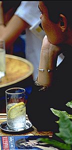 The Lipp hasn’t come along quite as well as the Deux Magots. Its ugly enclosed glass and aluminium terrace is in need of a face lift, even a good clean would help, while the interior has obviously been left to moulder away for decades. The Lipp’s clientele, at least when I was there, had none of the flash and fashion of the Deux Magots. There was a sickly looking man sitting alone and brooding over his coffee, a full ashtray of Gaulois stubbs smouldered in front of him as he prepared another between yellowed fingers. He didn’t raise his head once. Didn’t bother with the rest of us or the people passing on the pavement. Very un-cafe style. Cafes are places where you spend your time twisting your neck around to see and make sure that you’re seen. His form was abysmal. Then there was me, a small coffee. And in the far corner; an old woman bent over a crossword with a dirty poodle thing at her feet scratching its sores.