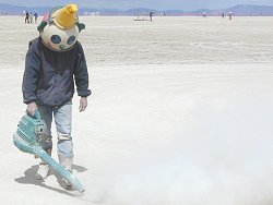 Not everyone comes to Black Rock City to create, but those who do —“ limited only by means, talent, and ambition —“ create works of art ranging from body painting to mammoth sculptures. Every imaginable material is used —“fabric, wood, steel, the alkaline lake bed itself, a twenty-ton meteor-like boulder hauled from outside the nearby town of Gerlach, even light.