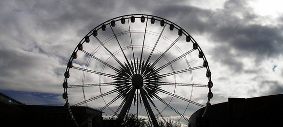 But I said, you’ll be fine, I smiled and nudged him through the small gate, and I tried to ignore the widow’s peak pointing down at his eyes like an arrow. I tried not to look. Has your Dad ever done that kid? Well, I did that. He sat in a cart, alone, and the wheel started moving and he got farther and farther away from me and none of it mattered. None of my imaginary I love you’s, not the ice cream, nothing. He looked like he would die up there, he got smaller and smaller but I could still see the tears like they were fucking lakes on his face, under his eyes, and I wanted to scream, to  split myself open telling them to stop the damn thing, to close down the fair, to stop the world – he was crying, but I didn’t– we were just a man and a kid after all – and he went round and round and round, loneliness on a spin, can you imagine? And each time he passed I smiled and looked away, aware of my crime but too lazy to do anything about it