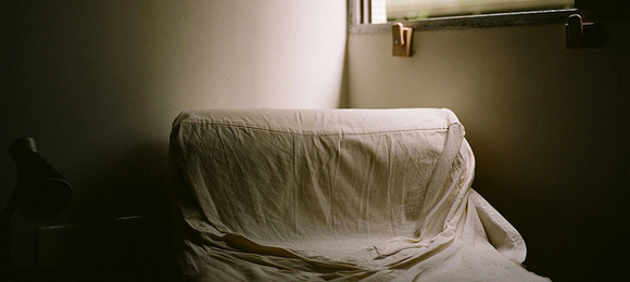 As we exit the car Sam bites her lip and we enter to find James’ warning well advised. The shades are drawn and yet this seems a detail at best as there is morbidity in the air that no amount of light can repel. The house appears raided by relatives from far and wide, the remaining piece of furniture a single sofa draped in soiled white cloth.
