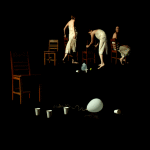 TAB: The initial inspiration for the compositions was to convince the viewer that they were standing at the edge of the entrance to a room…so I knew that the final image prints were going to be large, with a nearly full scale human perspective. The largest finished piece so far is nearly 7’x10′. As for theme, its a private space, a quiet moment. I like the direction a chair can lead you when entering a space. The other elements are important as well and they have all been chosen to be immediately recognizable with an inherent physical element such as sitting in a chair or drinking from a cup.
