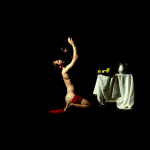 TAB: I produce images from studio set performances with live models and still lives. These images are printed onto panels via a photo-transfer method that requires “eroding” away the paper backing of the print with water and your fingers. Its crazy really, it can be painful at times, labor intensive and imperfect, but gives a worn, soft surface to the image. The final piece could be a very large flat print, or sculptural such as cabinet triptychs.