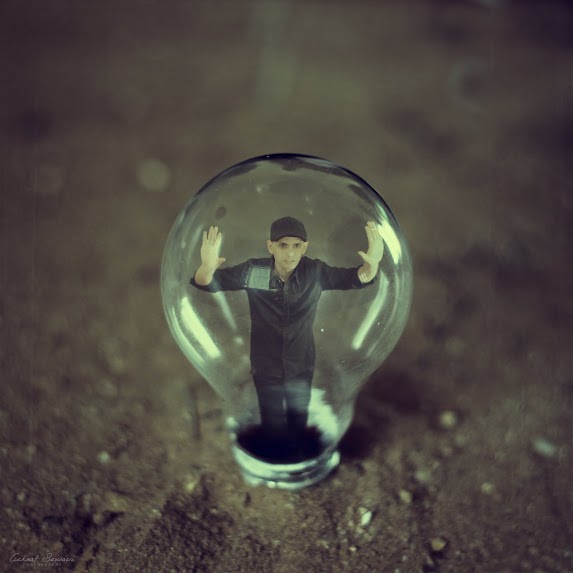 Moroccan photographer and filmmaker Achraf Baznani creates surreal scenarios through his wildly imaginative and wholly impractical imagery. A small human figure, often the artist himself, can be found throughout – sometimes appearing trapped within a glass jar or even shrunk to the size of a camera lens. Baznani hopes that the viewer perceives his strong senses of humor and wonder. A self-taught artist, Baznani has no formal photography training. He recently published his second photobook, “Through My Lens,” which shows that pictures truly speak louder than words. We hope you find Baznani’s creations unique and inspiring!
