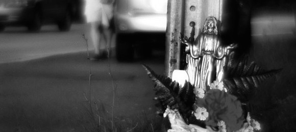 US-22 was a smaller road than I-78, just two lanes, and with much less traffic. Tom cruised slowly in the right lane until he passed the Exit to Stone Cold Creek, where, according to the listing on the website, a fatal accident had occurred two weeks before. Two boys, one nineteen and one twenty, had taken the curve too fast and jumped the metal guardrail, turning over twice. The driver, the nineteen year old, was killed; his older friend just suffered a broken collarbone. Tom peered into the darkness as he rounded the curve, but saw no sign of a memorial. He slowed down and kept going and saw up ahead something small and white attached to the metal guardrail. He pulled over to the shoulder and got out. Attached to the bent metal rail was a Styrofoam heart surrounded by blue vinyl flowers. In the middle of the heart was a plastic-encased photograph of a boy in cap and gown with the broad smile of someone finally escaping high school. Below the photo on the white Styrofoam was written in red marker We Love You Bobby We’ll See You in Heaven. “They sure went all out,” said Tom, who had developed a certain contempt for half-hearted efforts for the dead, legal or not. A car came up the road, slowed down, and pulled over ahead of his. “Shit,” he said. He walked over to the car and the driver lowered the passenger side window. He was a middle-aged black man wearing what looked like a clerical collar under his open jacket.
