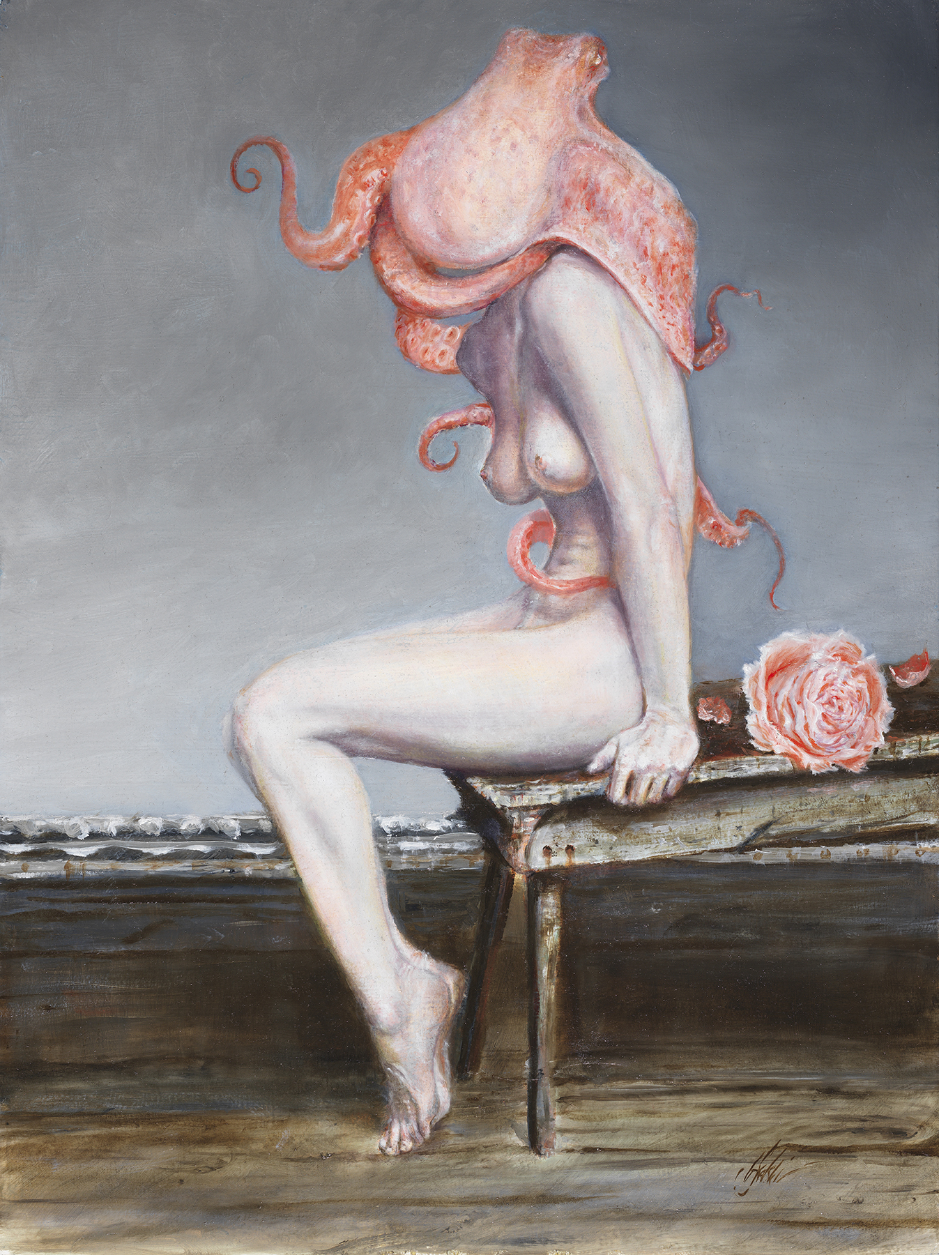 Most of my subject matter includes the female form in some form of interaction with nature and wildlife, albeit metaphorically at times. For me, it is important to represent the female form in the most positive light, as a thing of strength and beauty. Symbolically, there is this notion of mother nature and birth and nurturing that are the roots of everything we come from. It’s all quite humbling when you put it into perspective. I grew up around many strong women. My mom, sisters, grandmother, aunts and cousins were always prominent forces in my life. I was always very aware of the fact that the men in my family always represented the physicality of strength, while the women epitomized true fortitude. It seemed like a symbiotic relationship of sorts and quietly matriarchal. On some cellular level, all of these experiences are infused into my creative process. The resulting visceral stream of expression is in the best case scenario, hopeful and honest.