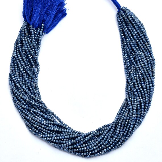 Hilo De Cuentas De Topacio Azul Natural Facetado - 33 Cm, 2.5 Mm, Calidad AAA Para Joyería