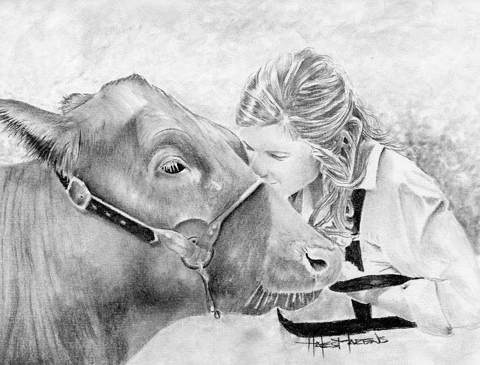 I live in rural north Missouri near the Amish community of Jamesport, with my wife (Kelly) and our six-year-old daughter (Quincie). We have a small herd of Registered Black Angus Cattle on our modest 100-acre farm. I have always been drawn to drawing and painting, and especially realism work. Having cattle and living in a rural area, I’ve enjoyed creating scenes with barns, rural culture and its animals. After our daughter arrived, the need to create a secondary income escalated my art career and it’s taken off from there.